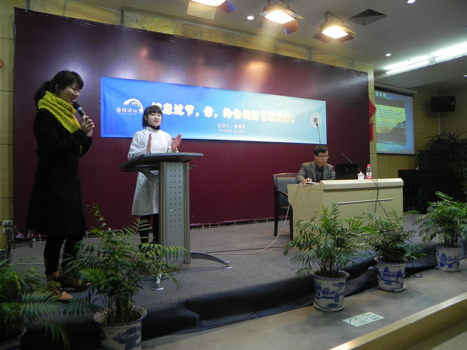我院2013年第三期健康大讲堂在市图开讲2月15日下午,由我院脾胃病科主任、副主任医师曾耀明主讲的题为《健康过节,亲,给你的肠胃放放假!》的健康讲座在温州市图书馆一楼多功能厅举行,近百名市民朋友参加了此次讲座。 在开讲之前,先由我院林玉丽…查看详情+
