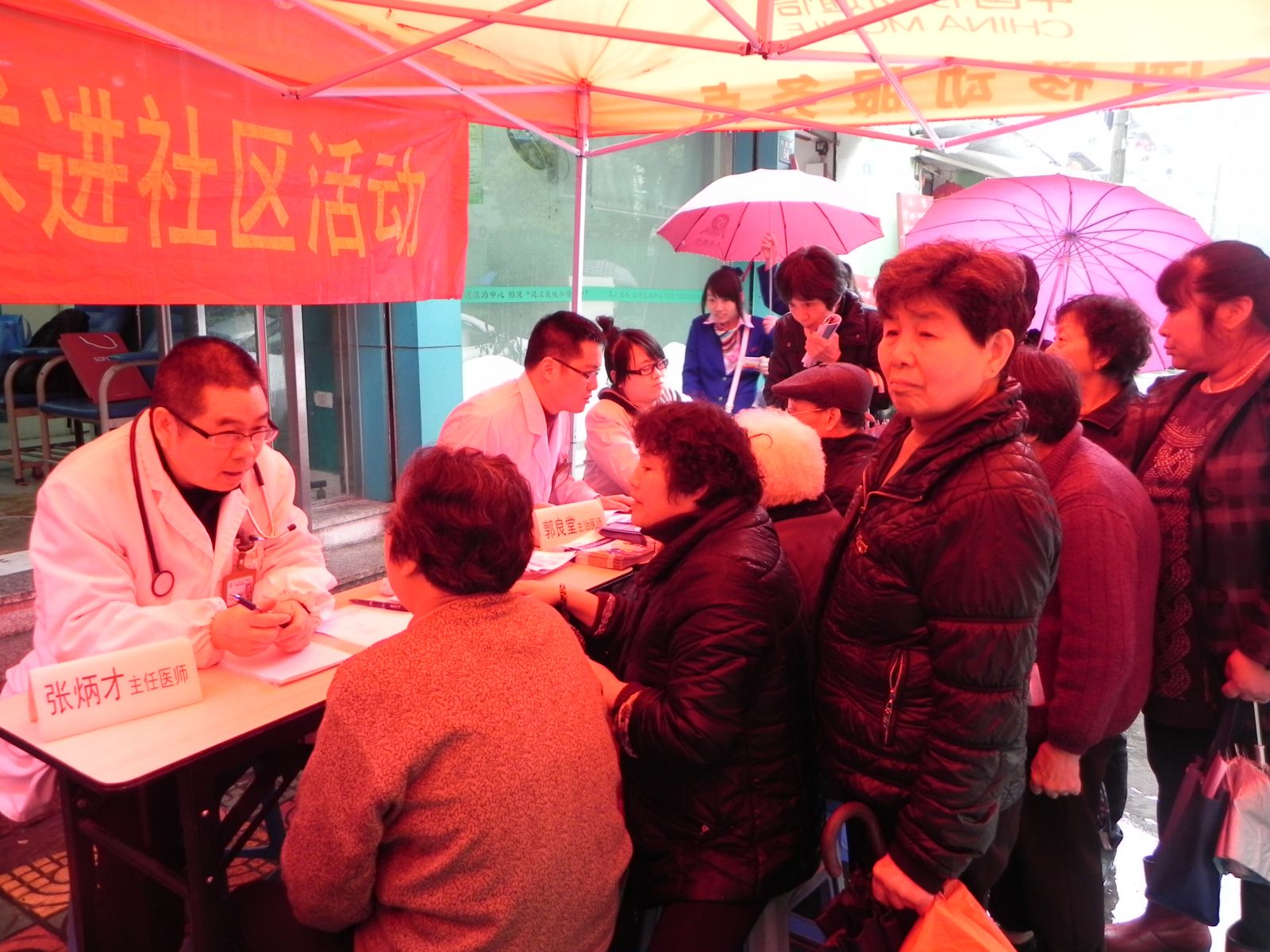雨天为市民义诊 送医送药暖人心