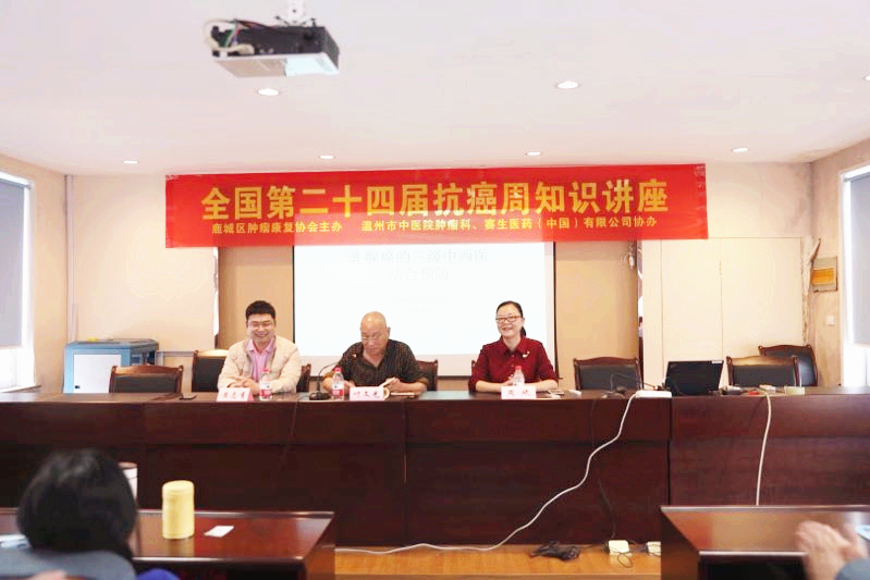 我院举行“全国第42届抗癌周知识讲座”2018年4月11日下午,我院综合肿瘤科周斌主任、黄志有主治医师受鹿城区癌症康复协会的邀请,在我院水心院区会议室举行了”全国第42届抗癌周知识讲座”,鹿城区癌症康复协会的120多名协会会员参加了此…查看详情+