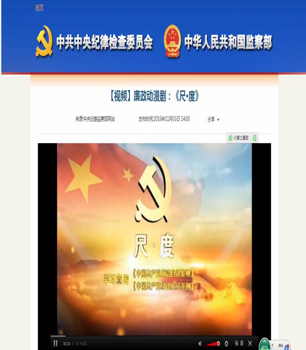 心中有警尺,言行循法度——《尺·度》观后感《尺•度》是由江苏省纪委推出的全国首部解读《中国共产党廉洁自律准则》和《中国共产党纪律处分条例》的动漫片,每集都包含了党纪条规、动漫故事、名言警句、温馨提示四个部分。 此次我们观看了《尺&…查看详情+