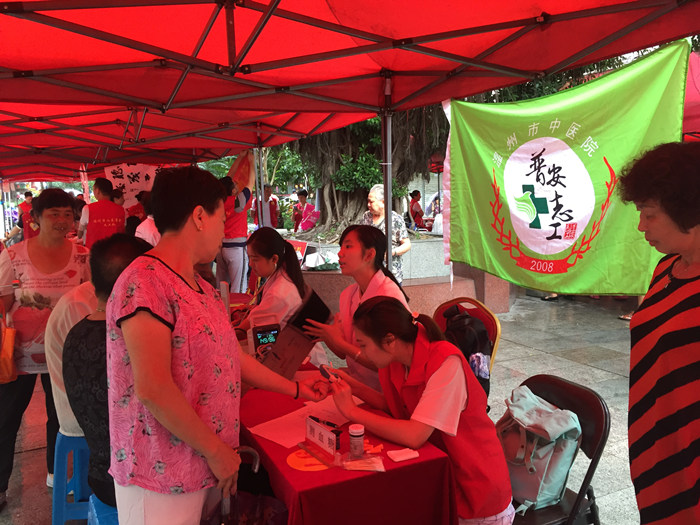 我院普安志工参与温州市“中华慈善日”暨慈善嘉年华活动2016年9月11日,我院普安志工参与了温州市“中华慈善日”暨慈善嘉年华活动。尽管活动当天大雨倾盆,但挡不住人们的热情。现场量血压、测血糖的人群排起了长队,医生的桌前也围拢了不少人,医生耐心…查看详情+