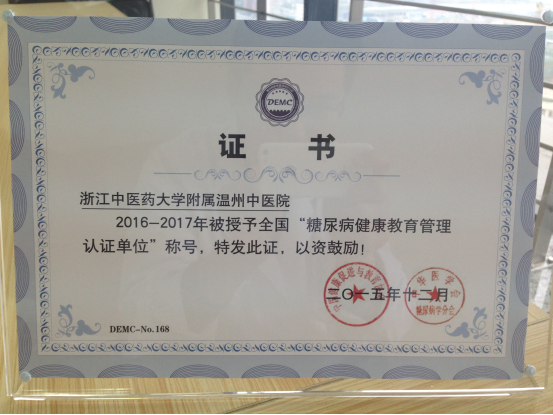 我院获国家“糖尿病健康教育管理认证单位”称号