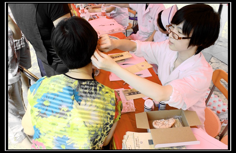 “热线联动,服务社会”,我院在梧田广场开展义诊活动