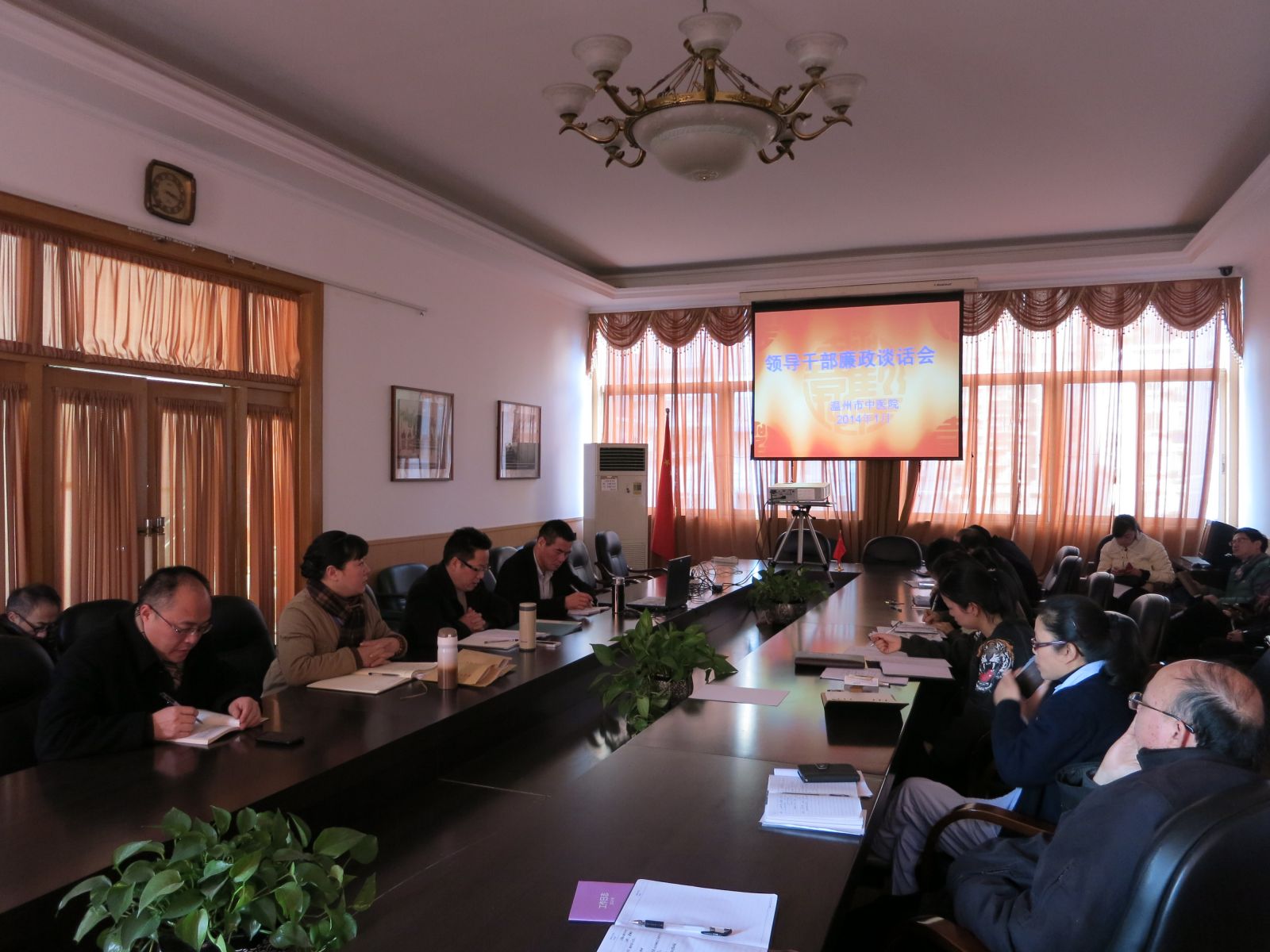 我院举行领导干部廉政谈话会2014年1月23日下午,市卫生局纪检书记杨文龙同志来我院举行领导干部廉政谈话会。会议由医院党委副书记、纪检书记黄爱林同志主持,医院领导班子成员以及中层干部和重点岗位负责人共30余人参加了会议。 杨文龙书…查看详情+