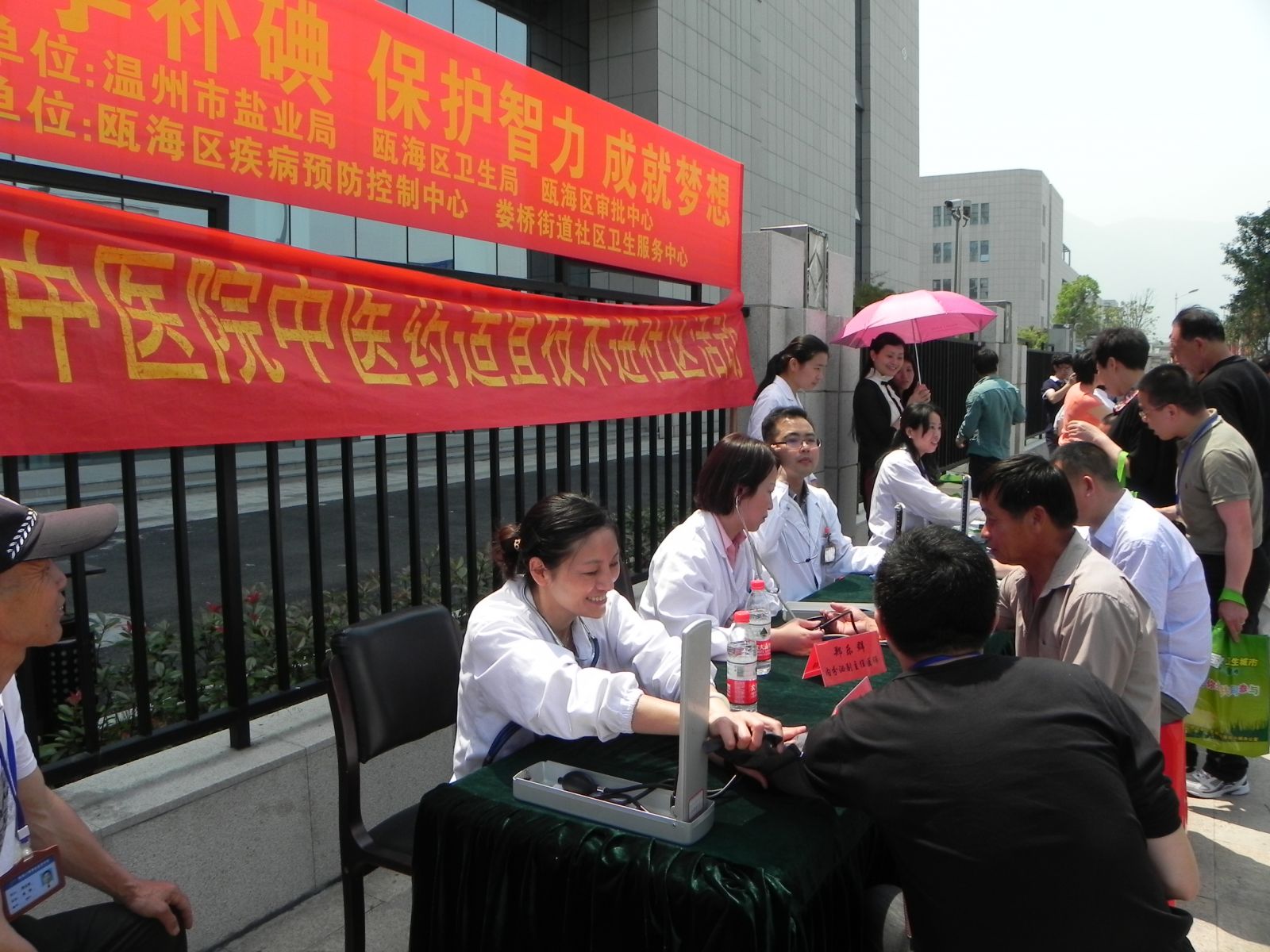 我院开展“防治碘缺乏病日”宣传义诊活动5月13日,温州市盐业局、瓯海区卫生局、瓯海区审批中心等单位联合我院在新瓯海区府大门前举办“防治碘缺乏病日”宣传日活动,以“科学补碘 保护智力 成就梦想”为主题,向人民…查看详情+
