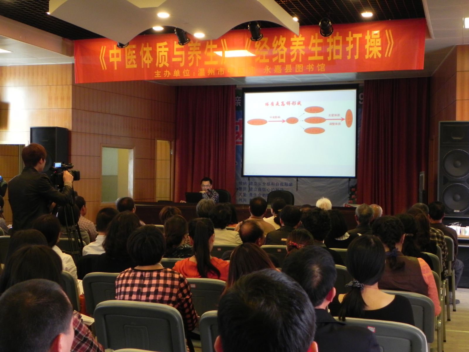 我院2013年第六期健康大讲堂在永嘉县图书馆开讲4月26日下午,我院2013年第六期健康大讲堂在永嘉县图书馆四楼会议室开讲。体检科副主任陈念昭作题为《中医体质与养生》的讲座,教大家如何进行中医体质辨识,讲解体质辨识如何有效地介入预防慢性病及亚健康,以及如何…查看详情+
