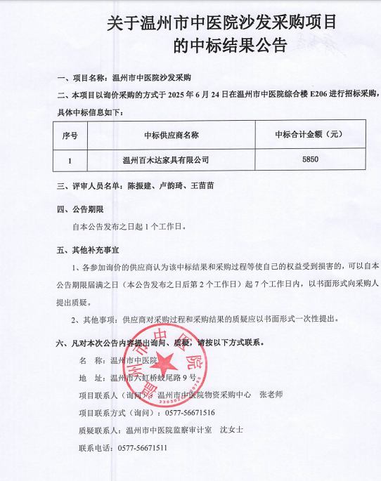 关于小妲己直播 沙发采购项目的中标(成交)结果公告
