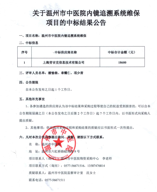 关于小妲己直播 内镜追溯系统软件维保项目的中标(成交)结果公告