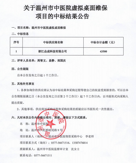 关于小妲己直播 虚拟桌面维保项目的中标(成交)结果公告