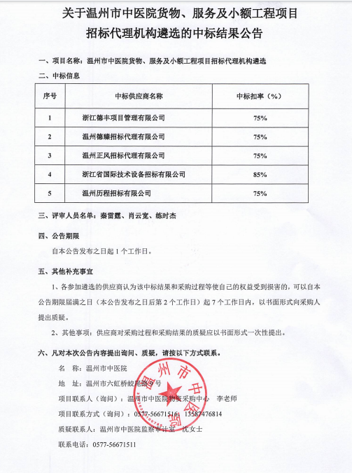 关于小妲己直播 货物、服务及小额工程项目招标代理机构遴选项目的中标(成交)结果公告