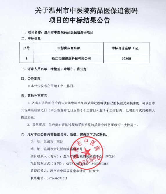关于小妲己直播 药品医保追溯码项目的中标(成交)结果公告