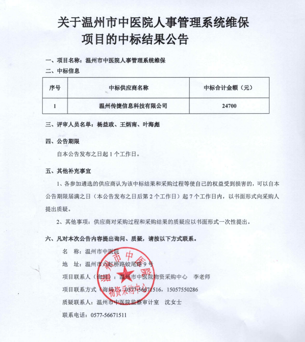 关于小妲己直播 人事管理系统维保项目的中标(成交)结果公告