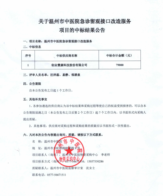 关于小妲己直播 急诊留观接口改造服务(重)项目的中标(成交)结果公告查看详情+