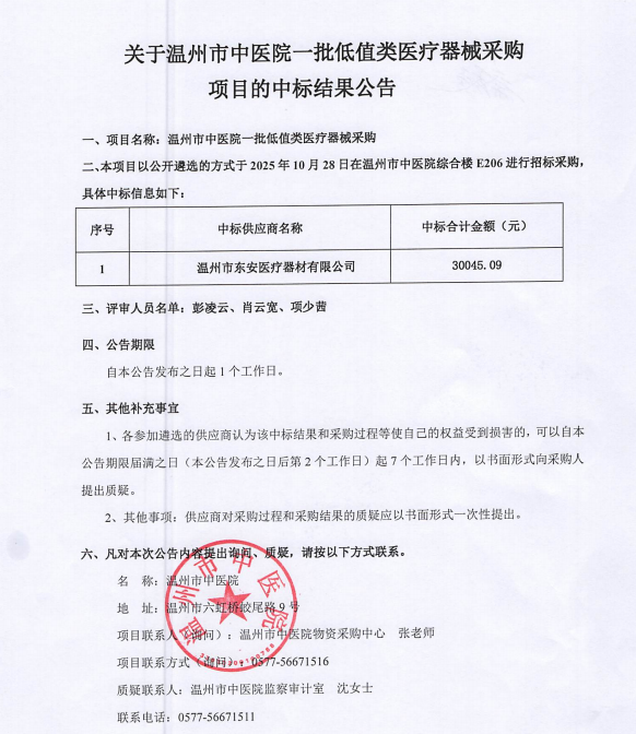 关于小妲己直播 一批低值类医疗器械采购项目的中标(成交)结果公告
