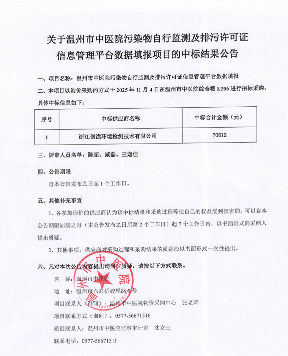 关于小妲己直播 污染物自行监测及排污许可证信息管理平台数据填报项目的中标结果公告