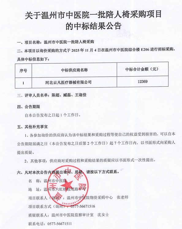 关于小妲己直播 呼吸机维保项目的中标(成交)结果公告