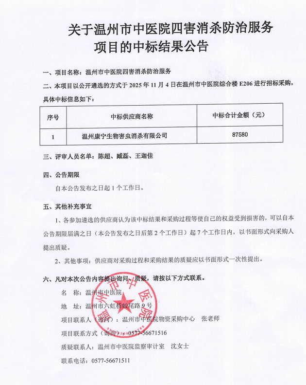关于小妲己直播 四害消杀防治服务项目的中标结果公告查看详情+