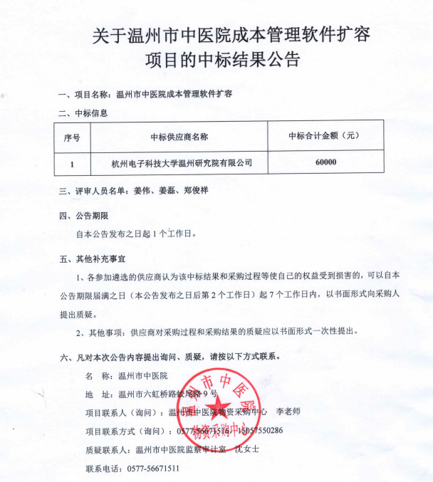 关于小妲己直播 成本管理软件扩容项目的中标(成交)结果公告