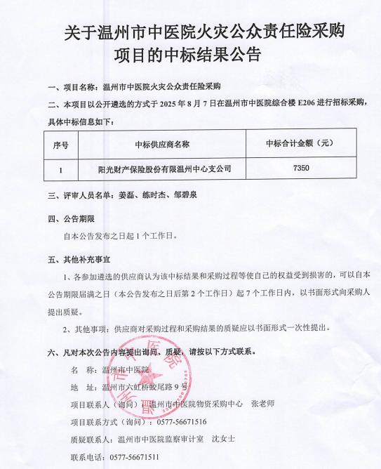 关于小妲己直播 火灾公众责任险采购项目的中标(成交)结果公告