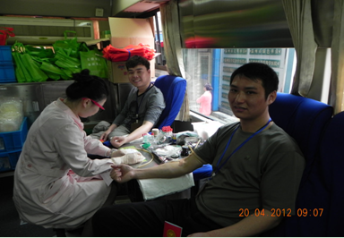 4月20日上午,我院积极响应温州市中心血站号召,在医院门诊大厅前举行2012年第二次无偿献血活动。