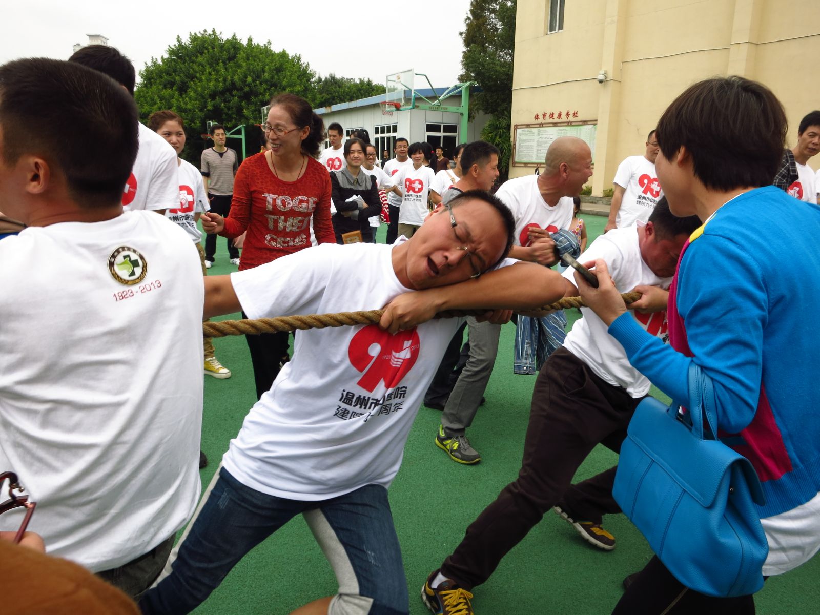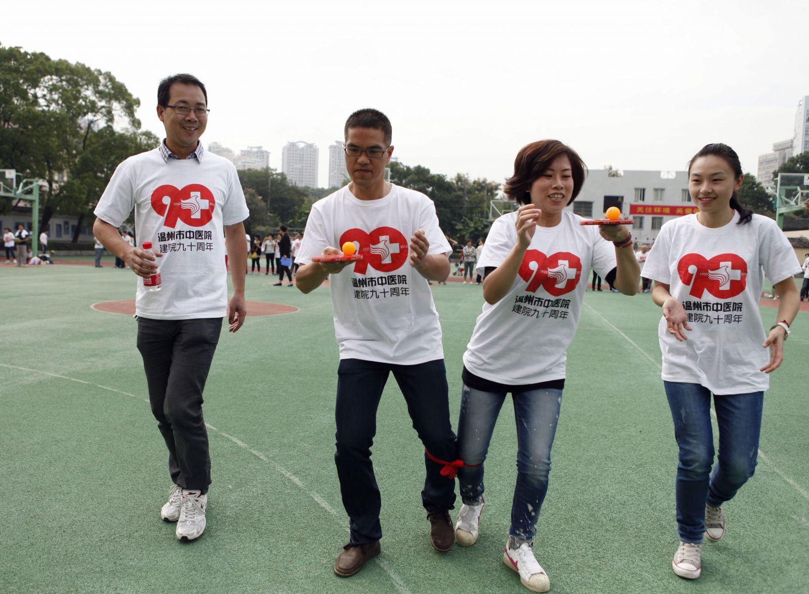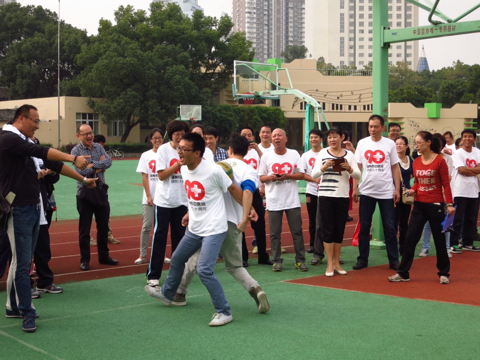 为深入贯彻《全民健身(2011-2015年)》运动精神,结合医院90周年院庆系列活动。2013年10月20日上午,我院职工健身运动会在温州第七中学举行。此次活动旨在选拔11月份医院组队参加浙江中医药大学2013年田径运动会暨教职工健身运动会人员,特选出“跳长绳”、“拔河”、“螃蟹运球”、“袋鼠跳”、“趣味接力赛”、“宝贝新娘”、“定点投篮”、“双人托球传递”等健身运动项目。运动会共有300余名职工参加,大家在健康生活和快乐运动中,促进了同事间的交流,增强了科室的集体凝聚力。