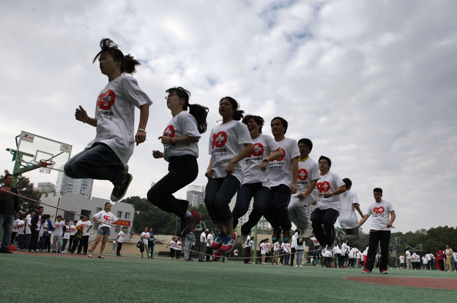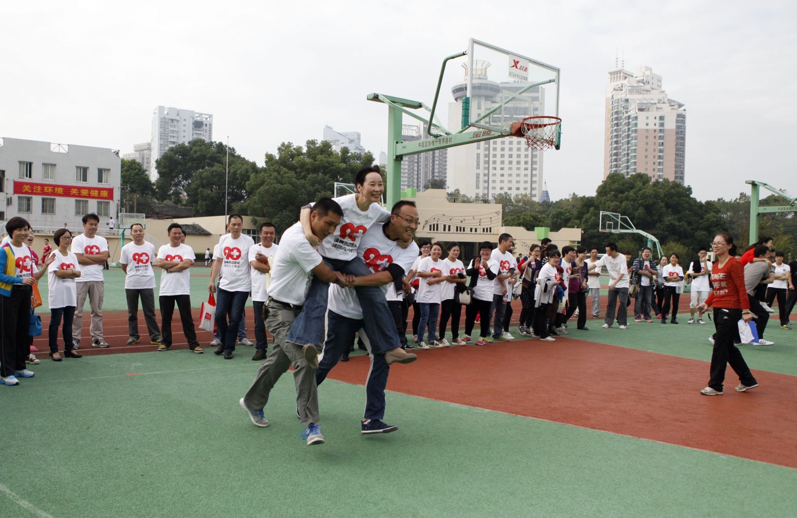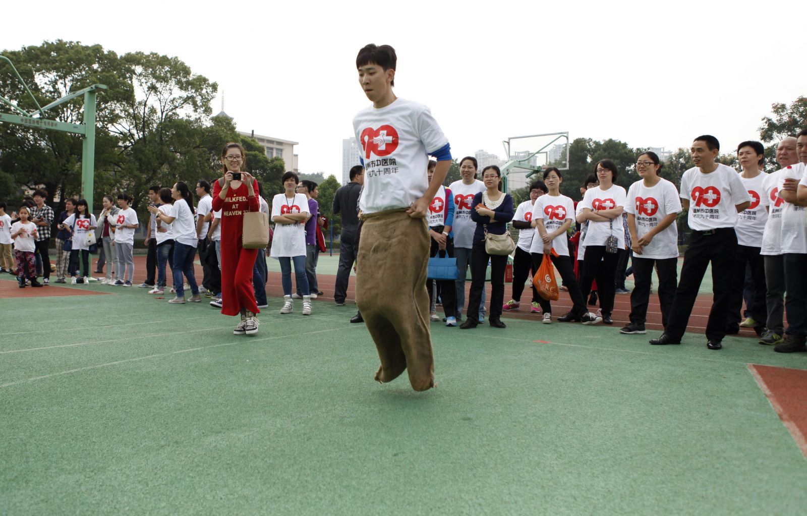 为深入贯彻《全民健身(2011-2015年)》运动精神,结合医院90周年院庆系列活动。2013年10月20日上午,我院职工健身运动会在温州第七中学举行。此次活动旨在选拔11月份医院组队参加浙江中医药大学2013年田径运动会暨教职工健身运动会人员,特选出“跳长绳”、“拔河”、“螃蟹运球”、“袋鼠跳”、“趣味接力赛”、“宝贝新娘”、“定点投篮”、“双人托球传递”等健身运动项目。运动会共有300余名职工参加,大家在健康生活和快乐运动中,促进了同事间的交流,增强了科室的集体凝聚力。