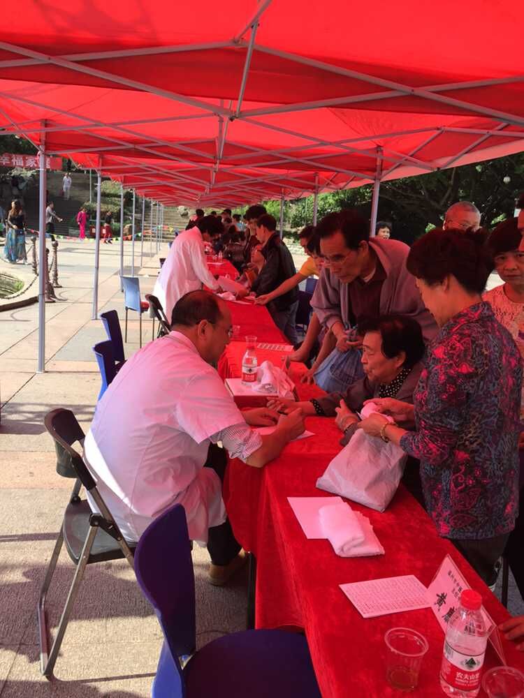 10月18日上午,为隆重纪念中国共产党成立93周年,我院党委配合市卫生计生委和市直机关工委联合开展“红十月·名医进社区”大型义诊宣传服务活动。由我院呼吸科刘刚、中医妇科孙云、肾病科黄蔚霞、心血管内科林梅瑟、康复科杨迎民、骨伤科吴惠明等主任医师及护士组成的专家在松台广场举行义诊活动。我院专家医生为市民开展健康咨询,护理部为市民开展免费测血压、耳穴埋豆等中医适宜技术推广活动。同时,我院监察室副主任吴春春参与到义诊现场设有的行风投诉点,接受市民有关医疗行风的咨询和投诉,受到了好评。