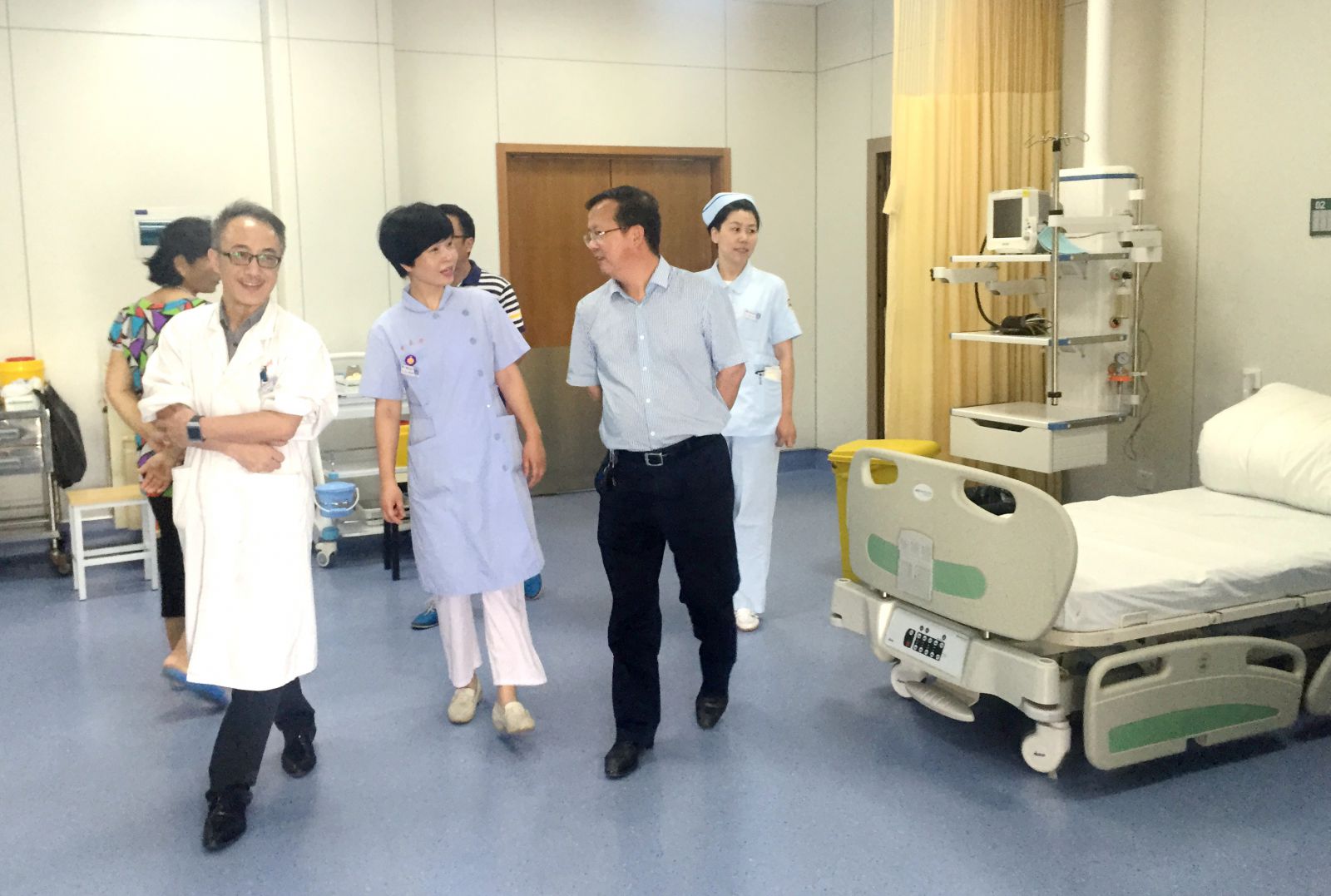 从中药房出来,程主任到二楼门诊部转了一圈,了解了现在病人到门诊就诊的情况。尔后来到急诊科,看到急诊科崭新的面貌,程主任笑着点了点头,护士长上前介绍了急诊科目前的情况,程主任在肯定工作的同时,也指出了该改进的地方。