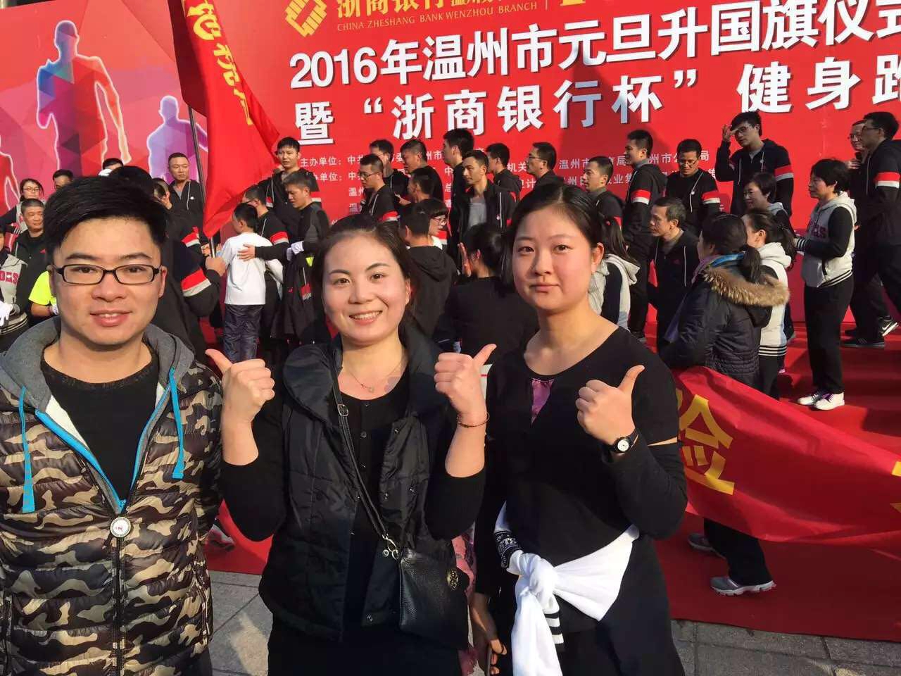 2016年1月1日上午,由我院工会、团委组队,赵永强副院长带队,徐甜甜、南智懿、黄雅丽、陈铂等人加入市卫计委方队,参加2016年温州市元旦升国旗仪式暨“浙商银行杯”万人健身跑活动。元旦万人健身跑是我市迎接新年的一项传统活动,一年一度的活动自1983年开始至今已举办了33届。