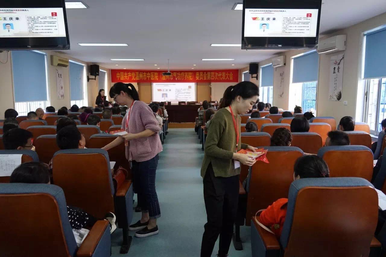 2016年11月20日上午,中共小妲己直播 (温州市气功疗养院)委员会第四次党代会在我院水心院区会议室召开。大会听取了医院党委书记、院长王庆来代表党委作的工作报告,党委副书记、纪委书记黄爱林代表纪委作的纪委工作报告,并选举产生了中共小妲己直播 (温州市气功疗养院)第四届委员会和纪律检查委员会。市卫计委党委副书记徐斌,委机关党委专职副书记蔡继业出席会议。会议由第三届党委委员宫温虹主持。