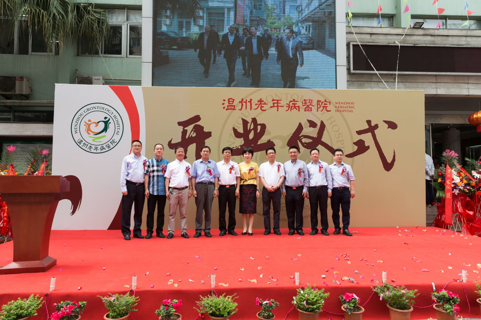 6月6日上午,温州老年病医院举行了开业仪式,出席仪式的嘉宾有:市人大副主任卓高柱、市人民政府副市长郑朝阳、市政协副主席夏克栋、市政府副秘书长叶世强、市卫生计生委主任程锦国、市卫生计生委副主任吴尚斌、市中医院院长黄建平及市政府有关部门,市卫计委相关处室,复星医药集团董事长陈启宇,复星医药集团副总裁、复星医院投资集团高级副总裁陈玉卿,复星医院投资集团总裁助理兼运营管理部总经理朱健华,省、市、县级兄弟单位,部分民营医院及温州中医医疗集团单位的代表。