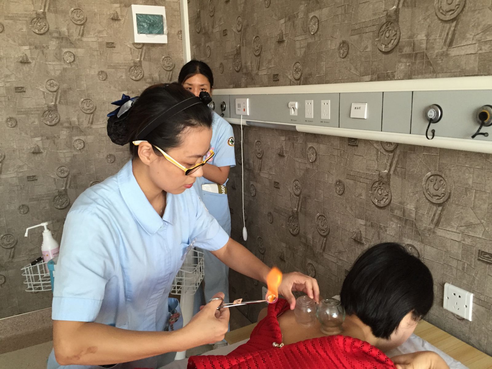 23日上午在各个楼层的中医综合治疗室里举行了中医护理操作技能比赛。在充满中医氛围的环境中,参赛人员进行了拔罐、耳穴埋豆、刮痧等中医护理项目的比赛。比赛包括中医护理评估、辨证、选穴、定穴、操作以及健康教育等内容,通过参赛人员对情景案例的辩证施护,提高了护理人员中医护理的整体观念和辩证施护的能力,更体现了此次比赛对环节设计上的用心。
