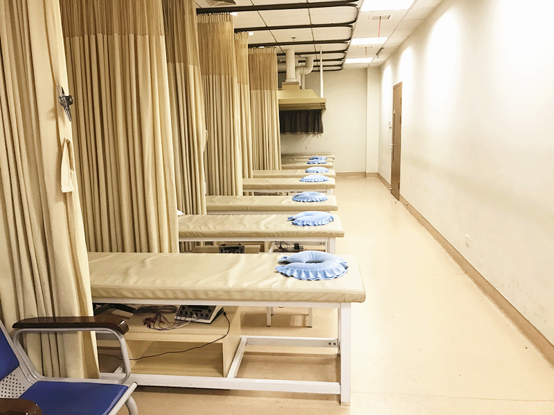 目前,科室有编制床位45张,具备先进的现代诊疗设备和良好的诊疗场所,拥有电脑三维牵引床、激光疼痛治疗仪、腰椎牵引床、颈椎牵引器、中药熏蒸治疗仪、多功能艾灸仪、电脑中频治疗仪、经皮穴位电刺激治疗仪、微波等医疗设备。