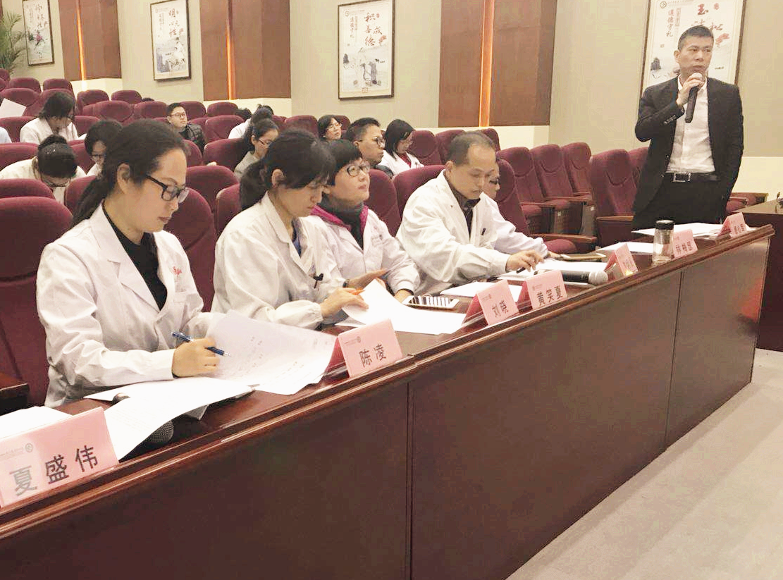 2017年12月14日上午10点,我院在六虹桥院区二期八楼会议厅举行了第一期全院性疑难病例讨论会,会议由医务科陈念昭科长主持,缪心军副院长到场指导,重症医学科刘晓主任、外科谢炳銮主任、干部病房林梅瑟主任、神经内科陈凌主任、药剂科黄笑夏主任、放射科夏盛伟主任6位专家应邀担任本次会议评委。