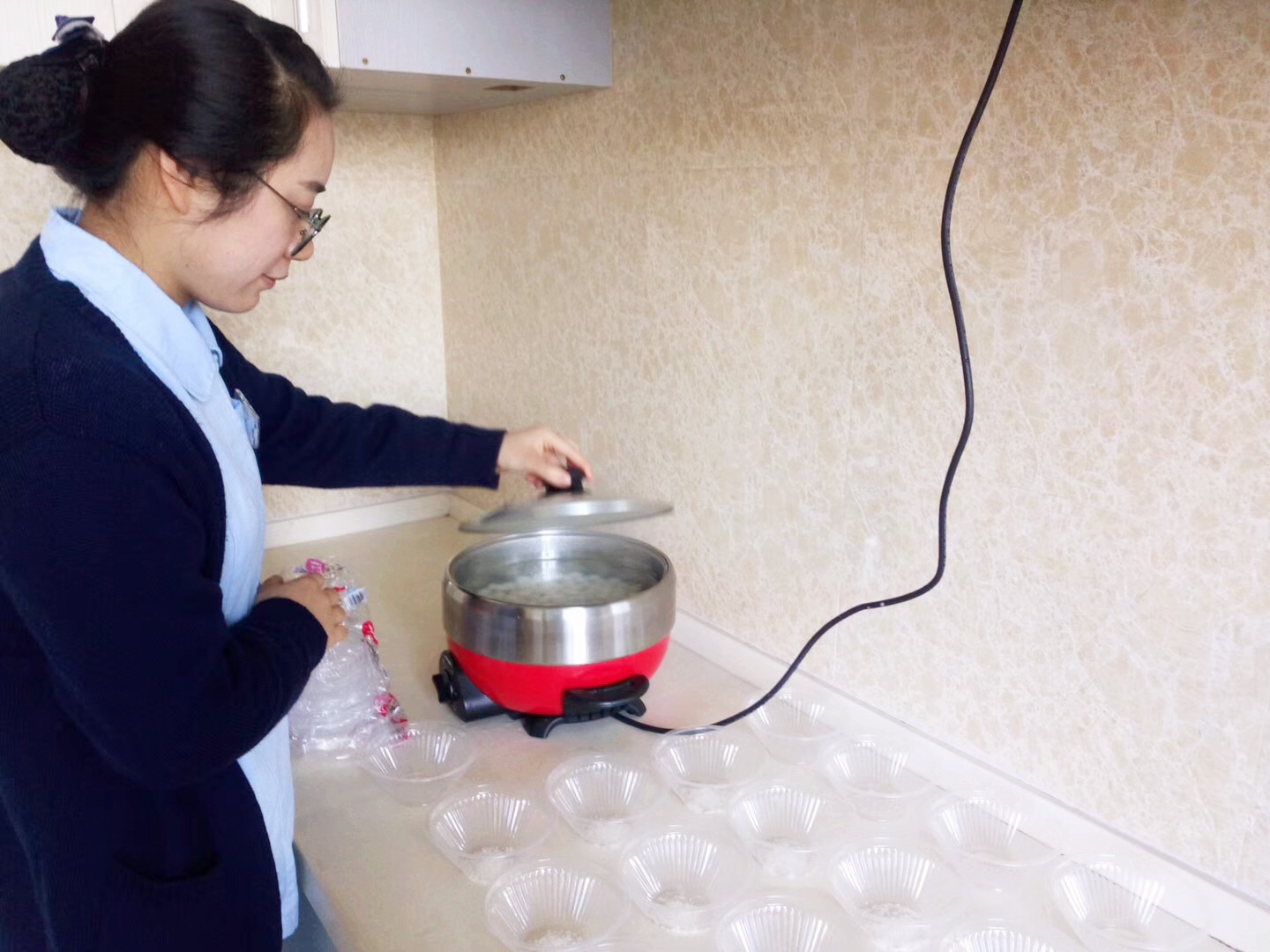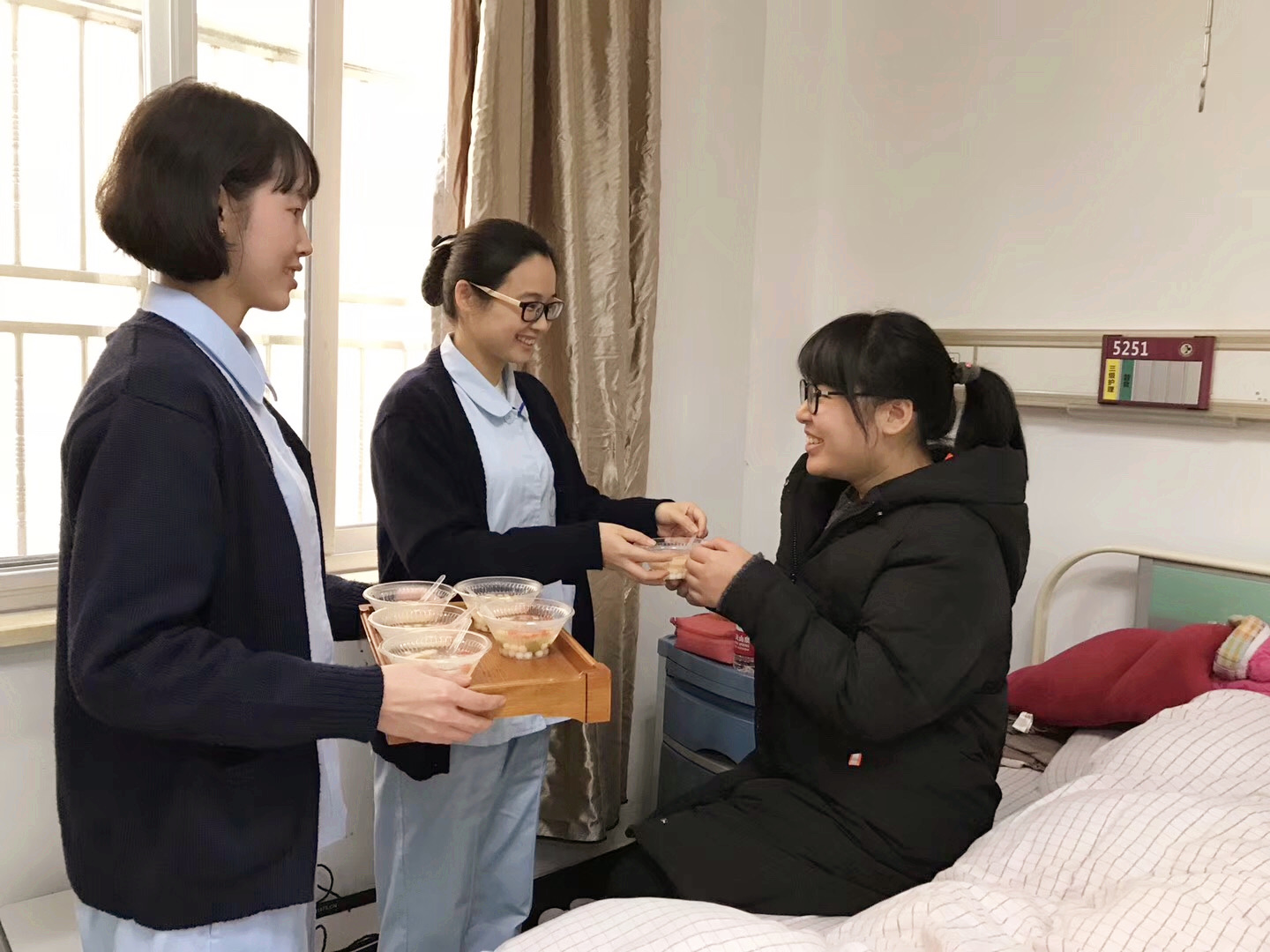 下午,食堂也为病区患者送上了冬至汤圆,考虑到部分糖尿病人不宜吃甜食,特为他们提供了饺子。水心院区的医护人员还为准妈妈们精心准备了水果汤圆、饺子,冬至日,虽寒至极,却在浓情的汤圆中不断升温。