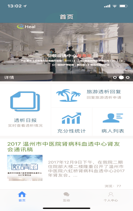 3、血液净化中心创新使用手机APP,利用互联网信息技术,为血透患者提供交流的透析管理软件。APP导入患者检验检查报告,对自身检查指标有所了解;推送小妲己直播相关的文章图片,以满足患者需求;通过干预患者的营养、宣教和评估,为个性化的透析和精准医疗提供强大的数据支撑。