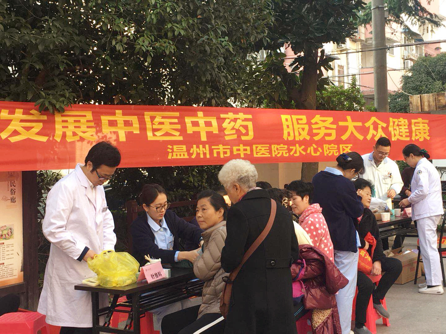 12月4日上午,我院水心院区组织医疗小分队来到菱藕社区文化广场,以“发展中医中药 服务大众健康”为主题,开展中医药宣传和义诊活动。