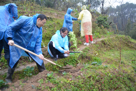 2017年3月11日 ,空中飘着绵绵细雨,却丝毫没有影响大家的热情,男同志们挖土挖得热火朝天,女同志们种树种得不亦乐乎,即使双脚沾满泥泞也毫不在意。现场,大家种下各色果树,为未来种下一份收获的期望。