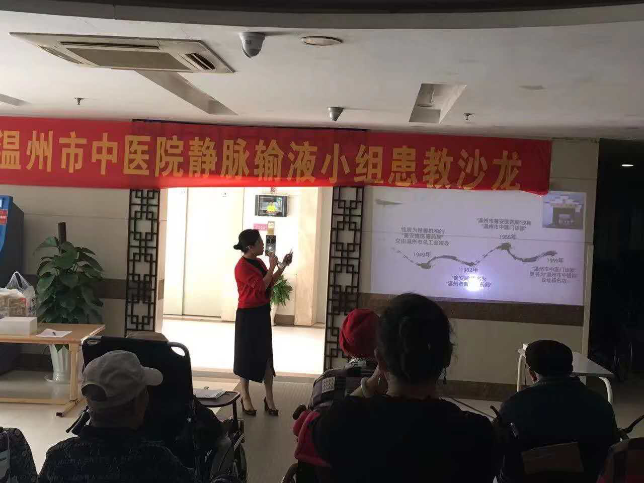 输液小组患教沙龙。本次沙龙邀请了景山院区病员、陪护及家属、静脉输液小组全体成员共同参加,由中医院康复科钱利娜护士长主持。