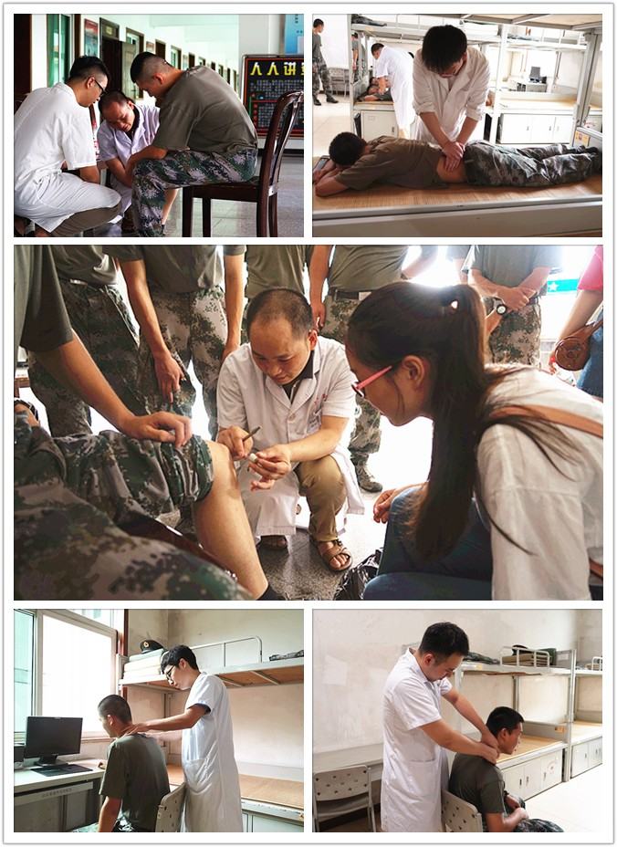 在随后的慰问活动中,我院针灸推拿科宋丰军主任及其团队为官兵们进行身体检查,针对腰背扭伤、关节劳损等常见症状开展针灸、推拿等中医特色诊疗,并教授官兵们缓解疼痛和自我保护的训练方法。