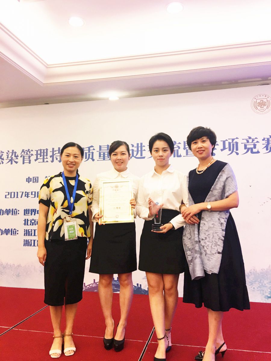 我院感染管理科推送了由针推科医护团队联合消毒供应中心共同完成的《降低中医治疗室消毒不合格率》QCC项目,其主要内容为针推科所有玻璃罐统一送至消毒供应中心集中清洗消毒处理,使玻璃罐消毒得到流程改进和设施改善及评价优化,同时中医治疗室环境清洁消毒、患者皮肤消毒、医护人员手卫生、医疗废物的管理等都得到明显提升。此项目在浙江省中医感染管理PDCA竞赛中成绩突出,不仅入选全国赛,还获得现场汇报资格。在决赛中针推科护士长孟盈盈和护士叶凯丽的亮眼表现、优美的原创歌曲《感控卫士》以及团队项目显著改进成果获得了评委的一致好评,最终荣获全国中医医院感染管理专项竞赛二等奖。