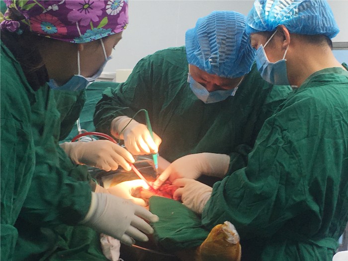 李主任从定位、消毒、铺巾到手术关键操作,完全亲力亲为,认真做了示范和指导。在高原手术不比平原,尤其对于初来乍到的医疗队来说,对体能的消耗更大。术中,李主任都需要间断地吸氧维持自身氧合以确保自己对待病人对待手术能够保持最佳的状态。凭借他们一丝不苟的工作态度与丰富的临床经验,手术过程非常顺利,病人术毕安返病房,且术后康复地非常理想。在初次满意合作之后,他们在接下来的两天内又顺利地完成了四台全膝关节置换手术,每台手术都完成得超出预期,令县医院的医师及患者家属相当满意。