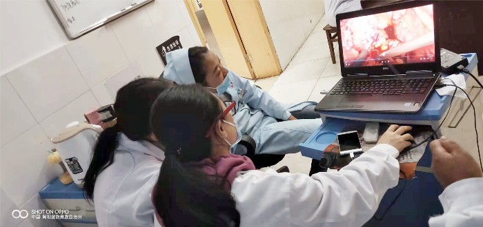 同时介绍了好几种网络平台学习专业知识的途径给她们,让她们养成平时随时随地学习的习惯,不断提高自己。并给了她们自己的微信号,让她们可以随时联系我咨询求助。 在阿坝县藏医院医疗援助的时间里,作为一名九三学社的成员,我全心全意地帮助她们建设科室、提高她们的专业知识和技术,手把手教会她们“分段诊刮术、吸宫术、绝经后取环术、创口皮内缝合"等各种操作,并带她们妇产科医生独立开展了"卵巢囊肿手术",希望在有限的时间内带给她们真正有效的传帮带效果。