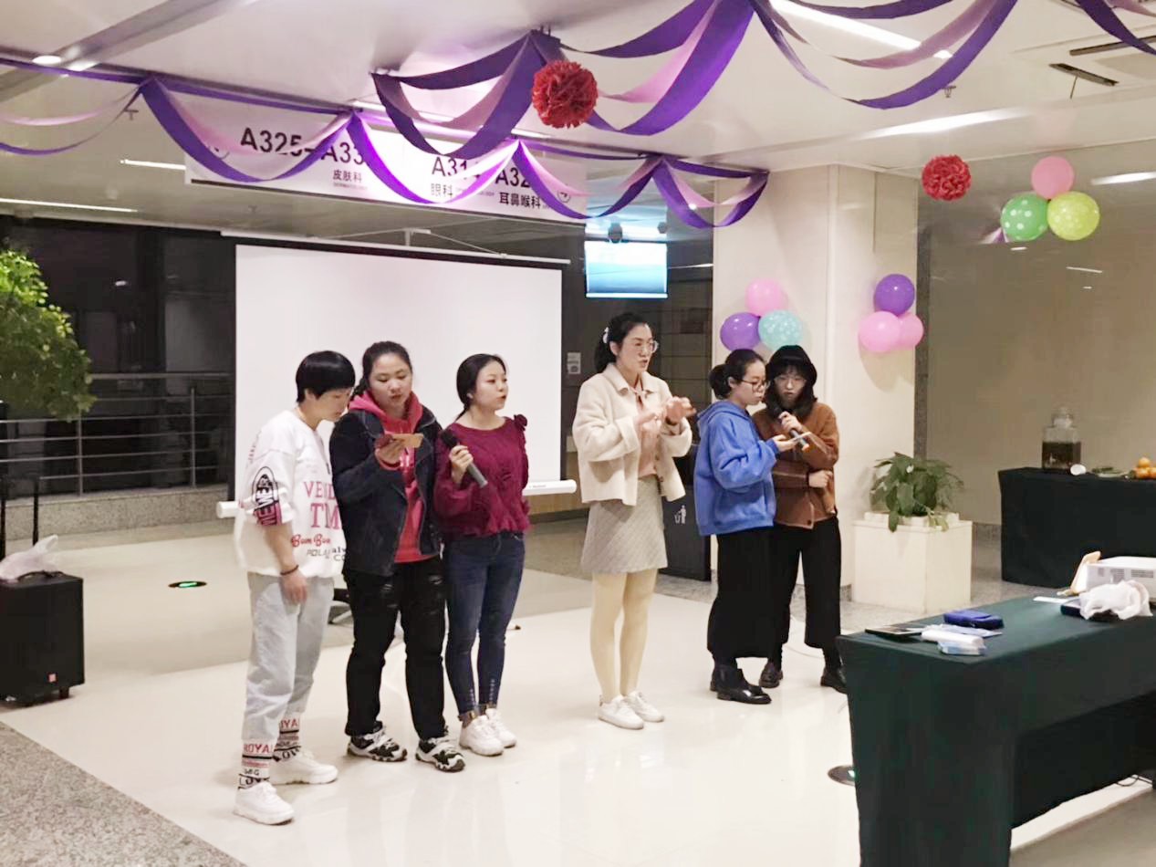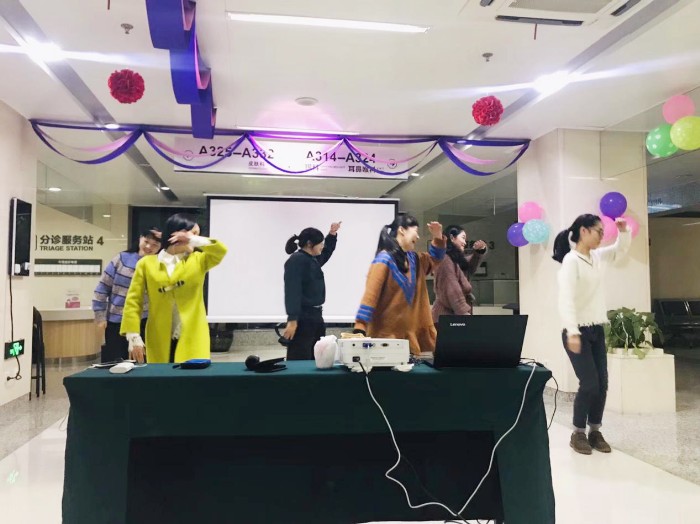 接着是科室里多才多艺的姑娘们自编自导的优秀节目:可爱诙谐的《小黄鸭》;温州市门诊第一支手语服务队成立的祝贺歌曲+手语表演《起飞了》;引人深思的小品《傻子上学》;展现女生似水柔情的《和你一样》。