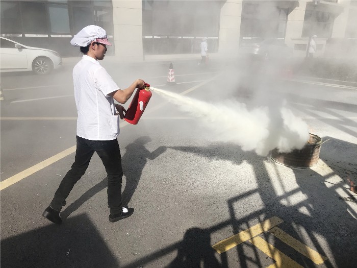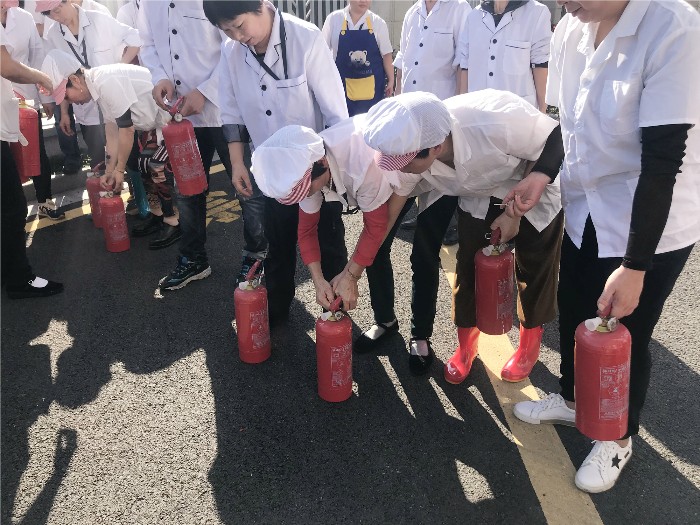 保卫科人员针对食堂工作岗位的性质,就火灾发生的原因、种类、预防措施、处理办法、消防器材的正确使用与保养等知识进行了详细讲解,并现场示范了灭火器的操作技能和使用方法。食堂全体职工认真听讲了消防安全知识讲解,并亲身体验了现场灭火的操作过程。