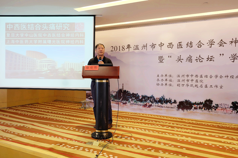 复旦大学中西医结合系副主任、复旦大学中西医结合研究所副所长、上海市中西医结合学会神经内科专业委员会主任委员蔡定芳教授介绍了《中西医结合偏头痛研究》。