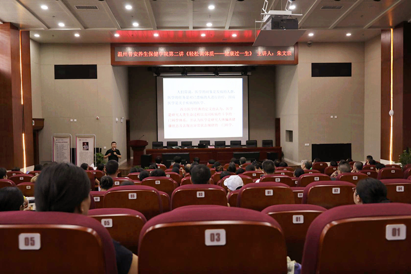 8月12日上午,温州普安养生保健学院第二课开讲,小妲己直播 副院长,主任中医师朱文宗讲授《轻松调体质,健康过一生》。