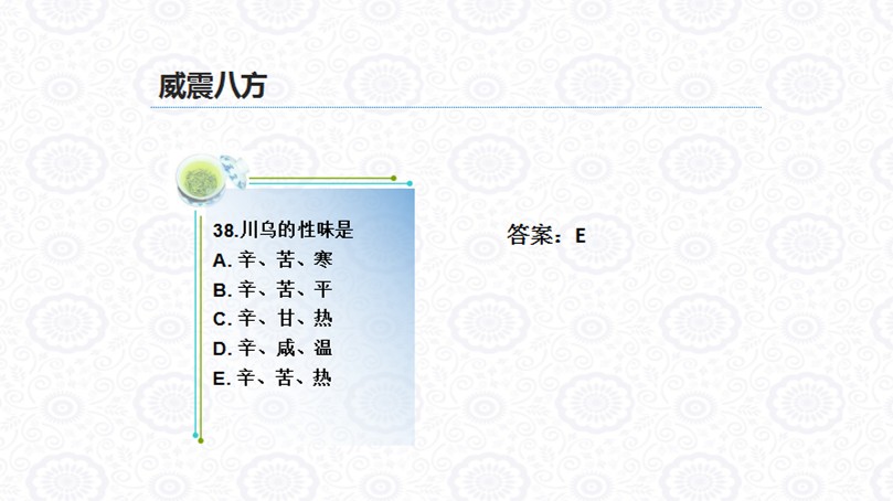 “威震八方”环节共有50个抢答题,题型为选择题。各代表队待命,主持人读题后,宣布抢答开始方能按铃,抢到题后需立即作答。主持人宣布对错。答对加10分,答错或违规扣10分。