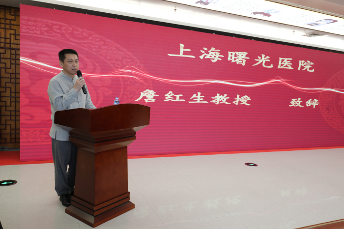 市卫计委程锦国主任,詹红生教授,我院院长王庆来出席仪式并致辞。程锦国主任在致辞中向我院与上海曙光医院“石氏伤科”开展合作成立工作室表示祝贺,并向传承拜师的中青年医师提出了期望和要求;王庆来院长阐述了我院与与上海曙光医院“石氏伤科”开展合作的背景和意义;詹红生教授在致辞中表示,将毫无保留地向师承的医师传授本领,使双方的合作取得实效。