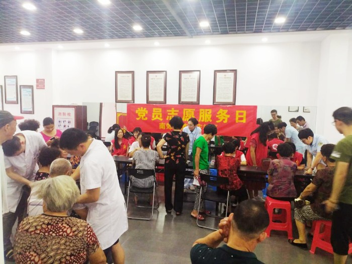 为深入学习贯彻党的十九大精神和习近平新时代中国特色社会主义思想,拓展党员服务群众、服务社区、服务社会的渠道,2018年9月20日下午,我院水心景山支部党员和温州医学院的实习生志愿者开展了以“爱心健康行,义诊进社区”为主题的党员医生护士进社区义诊活动,免费为南郊街道丽庆社区居民提供健康咨询、健康宣教、推拿、耳穴埋豆、测血压、测血糖等服务。